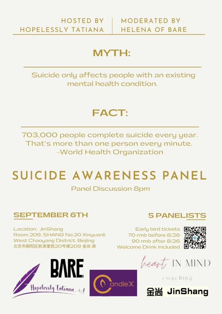 My decision to host a Suicide Awareness Panel is because we need to talk about the reality and impact of suicide. For every one person who dies by suicide more than 20 people attempt it. And beyond a sexual orientation-based suicidal probability, statistics are also divided between genders. Men are more likely to die by suicide, however, women are 2 to 3 times more likely to have a suicide attempt. Suicide is the fourth leading cause of death for people between the ages of 15 and 19. And for every death by suicide, the impact ripples through the bereaved family who are forced to live with the loss. These are facts. Not opinions.