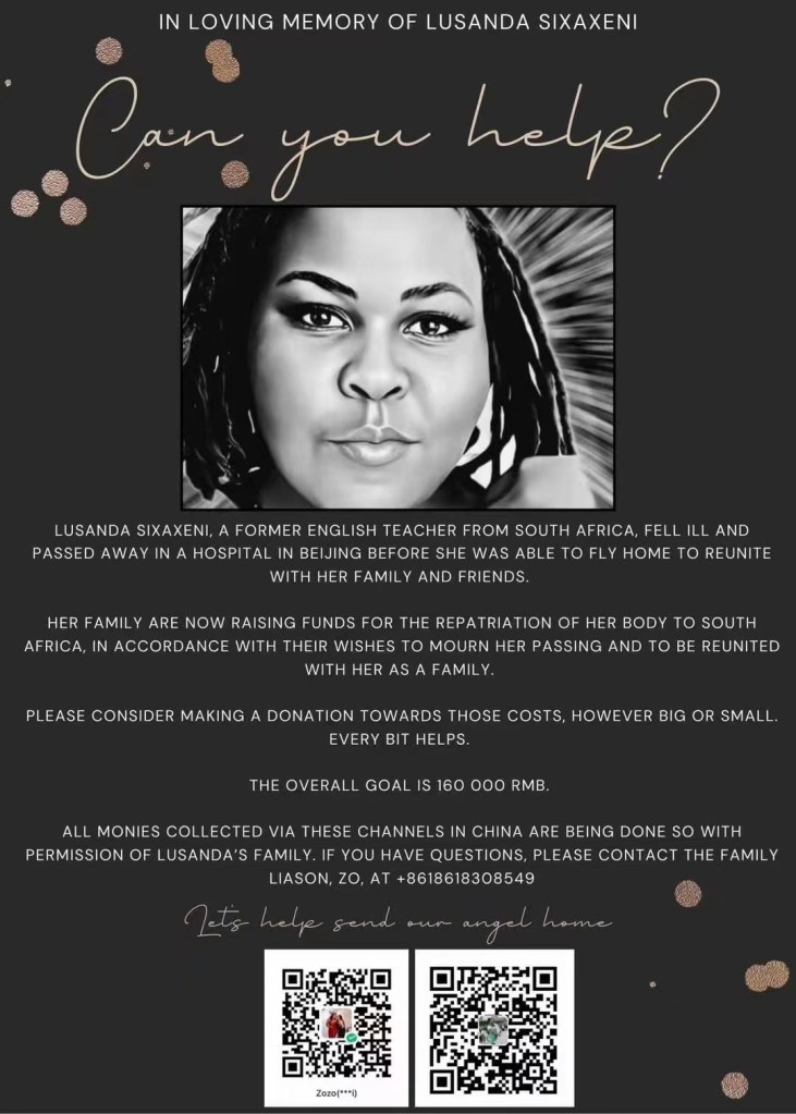 In a larger WeChat group where Lindo’s excruciating final moments and fundraising details have been shared, a non-Black foreigner asks for confirmation as to whether the story is “legit.” We all hear the dog whistle but I am far too exhausted to respond with anything beyond the Twitter thread that I myself had examined in the day, complete with media clips from a South African news source. “I would like to hear from someone who knew her,” he insists. Who knows her more than her mother, I wonder, and again the implication hits hard – that this is a money grab, an unverified attempt at fleecing generous, misinformed benefactors, as he also points out that the price point quoted for the repatriation of the remains is too high. I exist the group wondering how many remains of South Africans who died in China has he personally repatriated, but that is also in line with a general lack of empathy and mistrust with which Black and African plight is met even among international spaces in China.